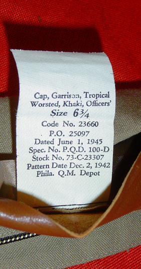 US Army WW2 Garrison Cap, Khaki, Officer's Tropical Issue