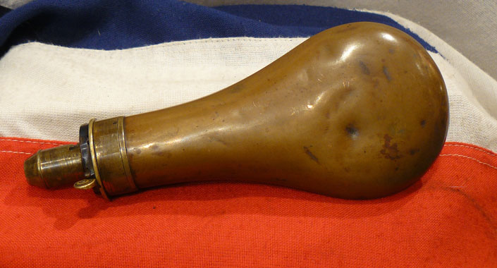 A Good Plain Sykes Patent Copper Powder Flask. Early 19th Century.