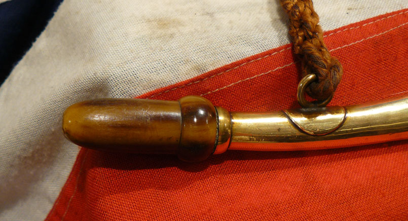 A Most Interesting French Post Chaise Horn. Brass Trumpet, Horn Mouthpiece.