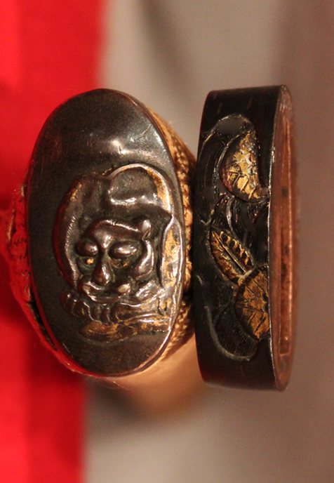 In later Japanese feudal history, during the Sengoku and Edo periods, certain high-ranking warriors daimyo of what became the ruling class would wear their swords tachi mounted This sword would very likely have been used in the Onin War (1467-1477) which led to serious political fragmentation and obliteration of domains: a great struggle for land and power ensued among bushi chieftains and lasted until the mid-sixteenth century. Peasants rose against their landlords and samurai against their overlords, as central control virtually disappeared. An early Japanese print in the gallery shows a samurai receiving his reward of a fine tachi such as this one from his shugo daimyo lord.