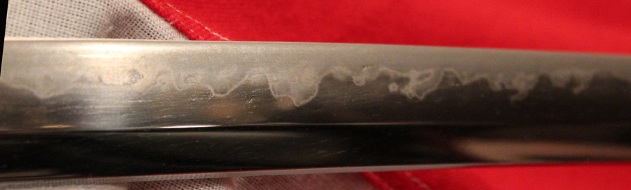 28 inch blade length from tsuba to tip, 39 inches full length complete katana in saya, 9.65 inch Tsuka