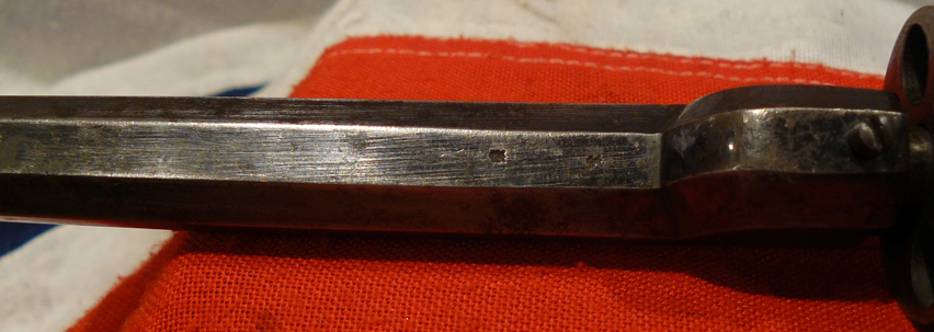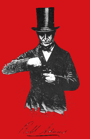 A picture in the gallery is of Robert Adams himself, loading his patent revolver for HRH Prince Albert, Queen Victoria's Consort. He was also manager for the London Armoury and he made many of the 19,000 pistols that were bought by the Confederate States for the Civil War. The US government also bought Adams revolvers from the London Armoury, at $18 each, which was $4.00 more than it was paying Colt for his, and $6.00 more than Remington.The action on this beautiful gun is perfect, very nice, and tight, but the trigger return spring is weak. In good blue finish with some original 'mirror' blue finish remaining. Revolving cylinder operates sporadically.