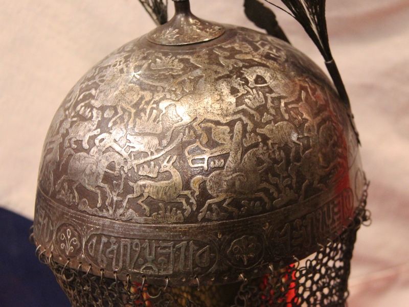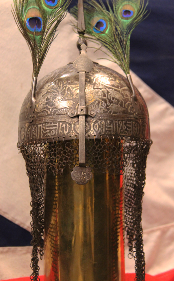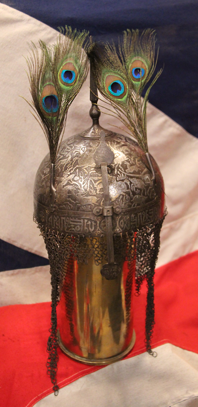 The last picture in the gallery is a later interpretation of the legendary ruler Saladin, Sultan Salahuddin Ayyubi, wearing his version of the khula khud dome topped, chain mailed helmet.