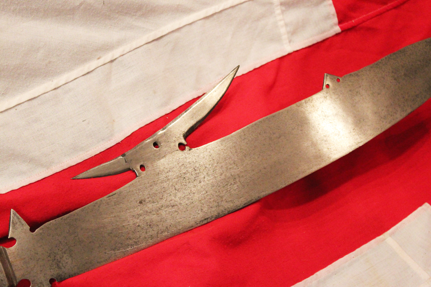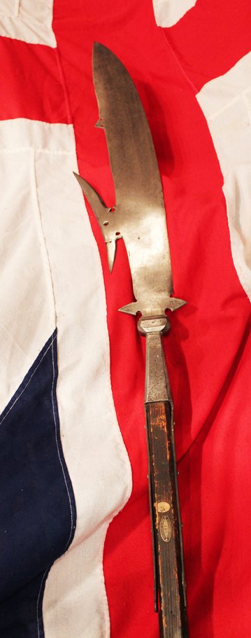 The contemporary term for this weapon may have been faussart, which was used for a variety of single-edged weapons seen as related to the scythe (along with terms such as falchion or falcata derived from falx, the Latin term for "scythe"). 96.75 inches long overall haft is so long it would need to be expertly but only temporarily halved by our workshop for shipping This superb glaive was formerly part of the Higgin's Collection and exhibited in the wonderful Higgins Museum Collection in Massachusetts for many decades, and it still bears, for its provenance, its original John Woodman Higgins Armoury Museum collection label.