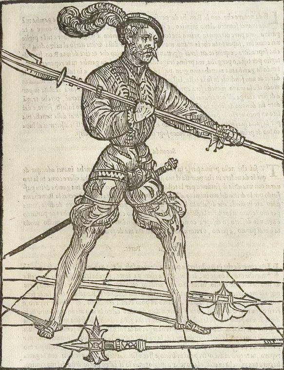 According to the 1599 treatise Paradoxes of Defence by the English gentleman George Silver, the glaive is used in the same general manner as the quarterstaff, half pike, bill, halberd, voulge, or partisan. Silver rates this class of polearms above all other individual hand-to-hand combat weapons.