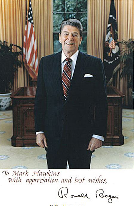 The autographed photographs in the gallery, one from President Reagan, that was taken in the Oval Office in The White House and was very kindly given to Mark during his visit in the 1980’s. and the two certificates from The BACA Awards, and The New York Times.