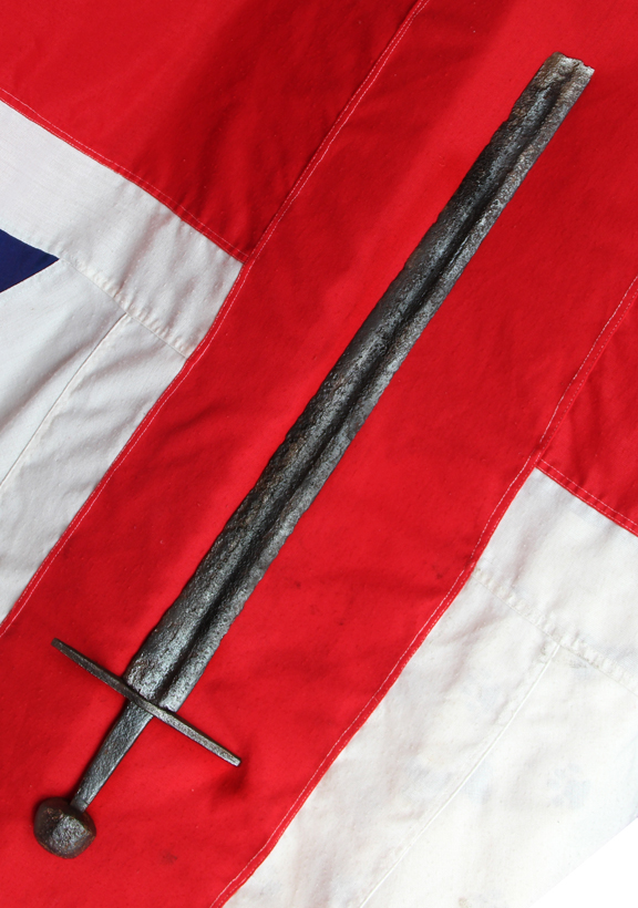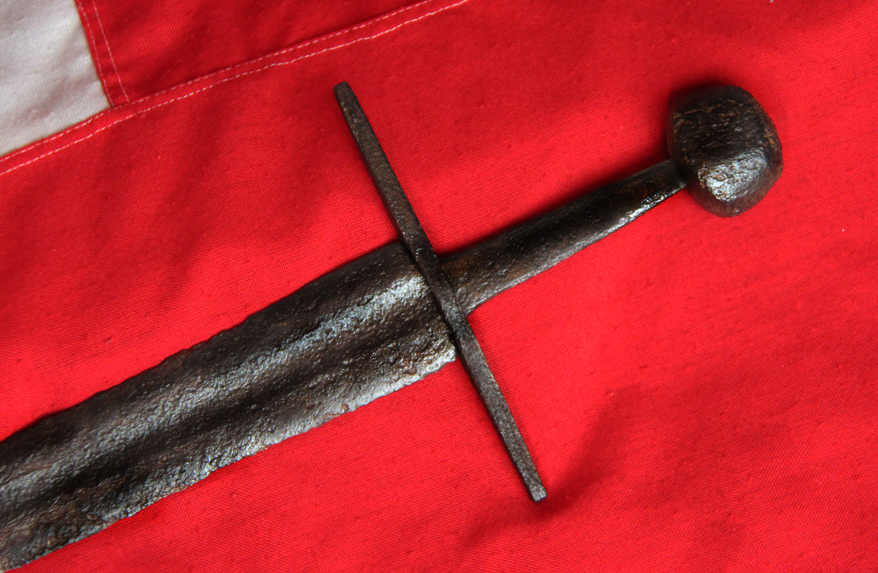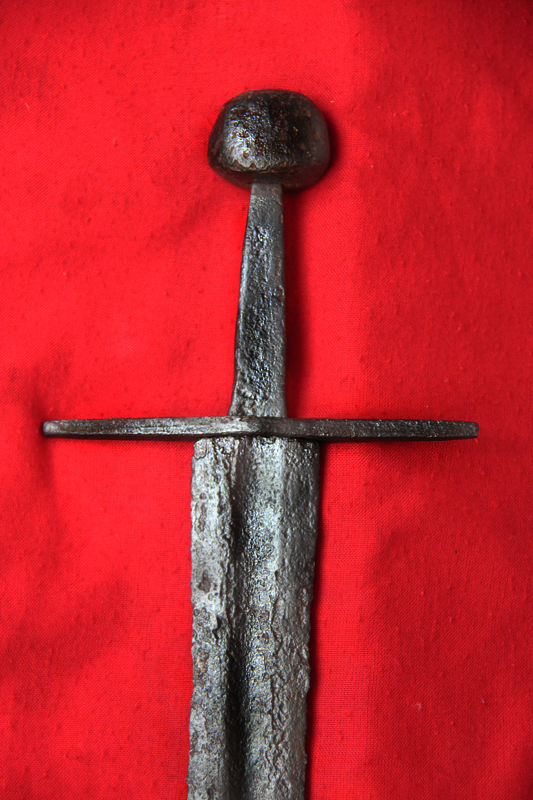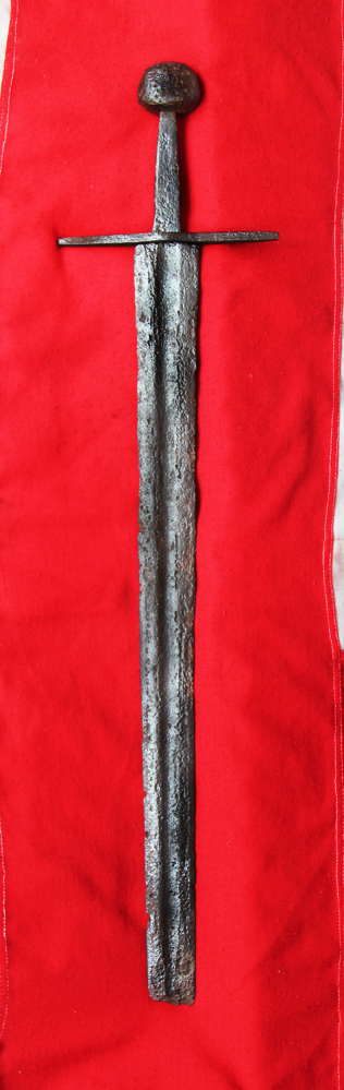 A fine example piece, from the ancient knightly age, from almost 800 years past. Although this sword is now in an obvious ancient, and historical, russetted condition, with some elements lacking, every item made of iron from this era, such as the rarest of swords and daggers, even in the Royal Collection, are in this very same state of preservation.