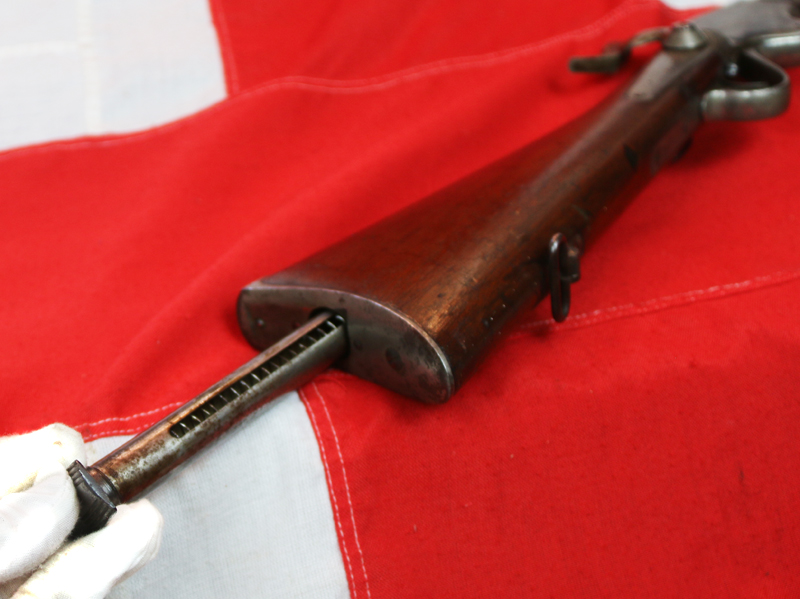 It bears a US inspector’s cartouche stamp on the stock, and that particular inspector is seen on the Colorado issue range, within the 33k serial numbered guns, this is rare in that only 500 carbines from this serial numbered range were transferred to the Colorado territory, and this is only the second we have ever seen, both in that rarely seen 33k serial number sequence.