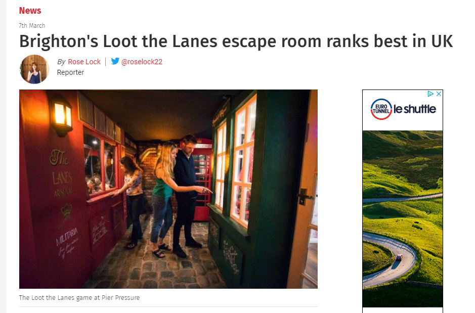 Players must solve puzzles and work their way through a series of clues in a mock-up set of The Lanes, which includes a red telephone box and The Lanes Armoury antique weaponry shop, before breaking into an antique jewellers to find the diamond.. Links to it are here, just copy and paste; https://pierpressure.co.uk/escaperooms/loot-the-lanes/ https://www.theargus.co.uk/news/18283688.brightons-loot-lanes-escape-room-ranks-best-uk/