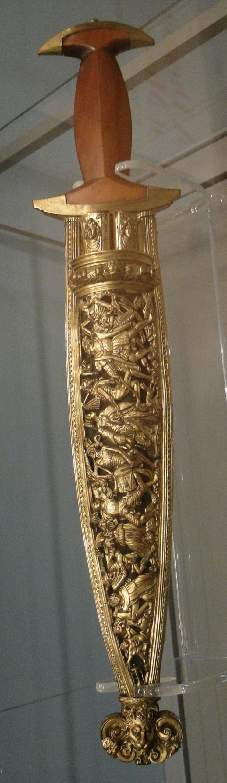 See a plain wooden hilted version of Holbein’s original dagger in photo 8 in the gallery in the Wallace Collection in London.