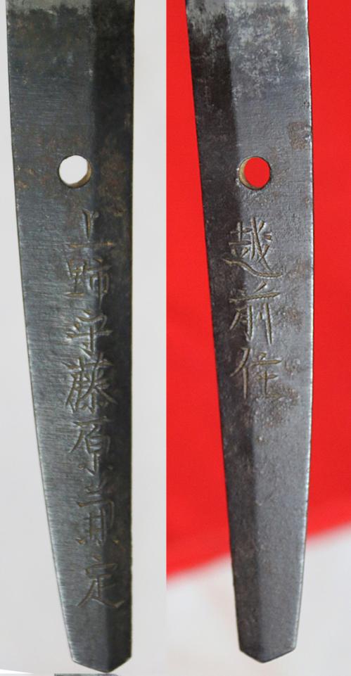 Signed over both sides of the nakago, Echizen ju Kozuke no Kami Fujiwara Kanesada 1680.