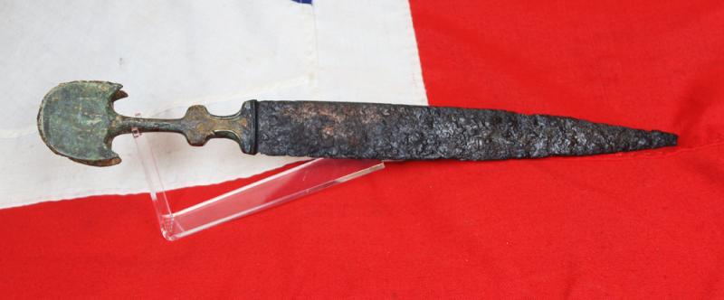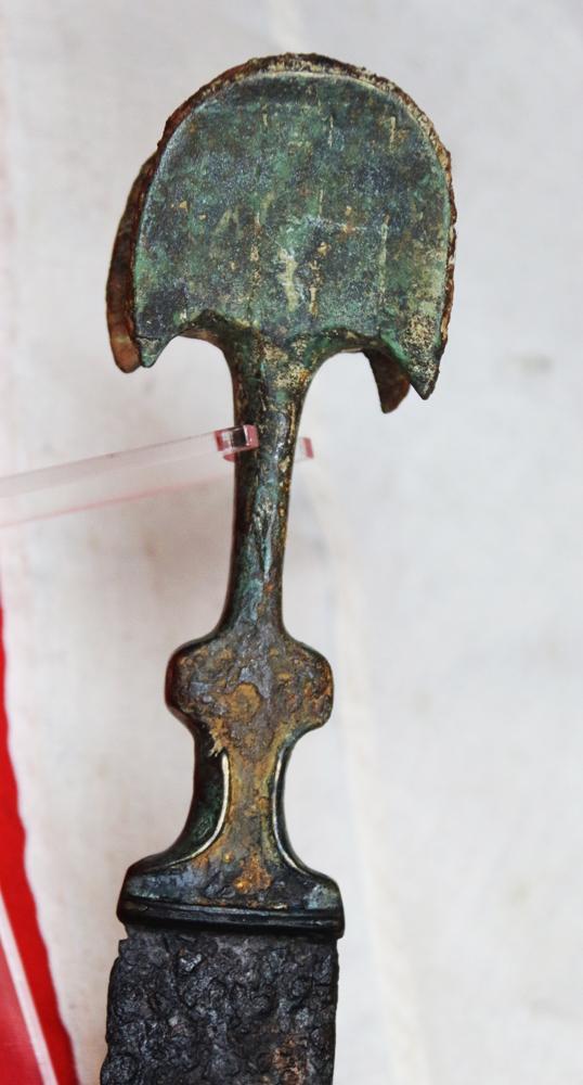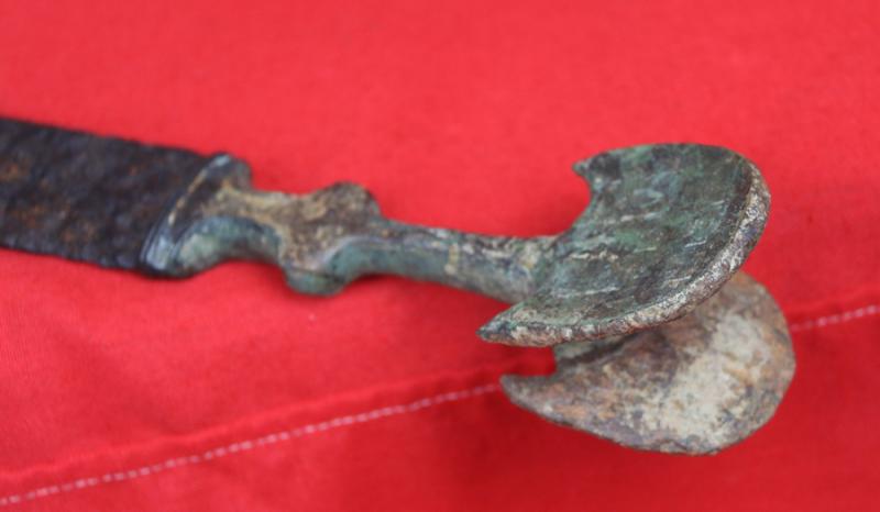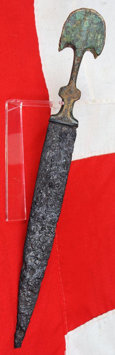 It is 7th century to 6th century BC, and was a most rare and incredibly valuable weapon of war during that time, utilising as it does a combination of steel and bronze, as iron steel was a most rare, valuable and highly prized metal in the early ancient Bronze Age period. This wonderful sword would likely have been used and held by warriors of nobility for likely several hundred years.