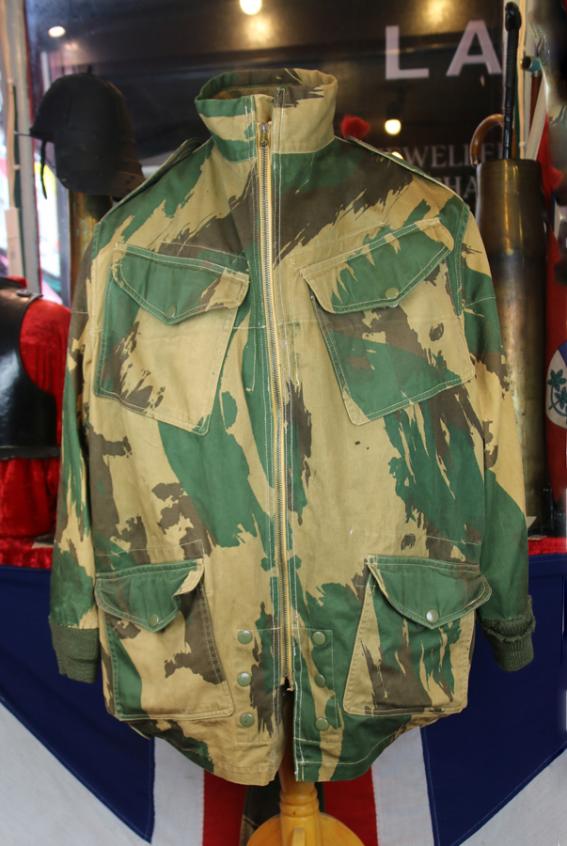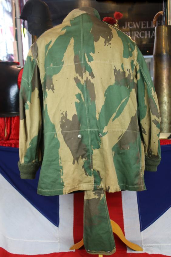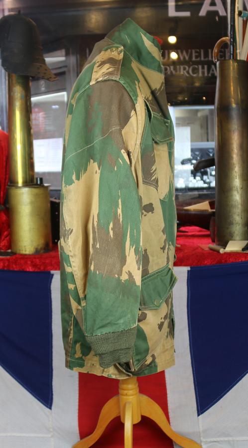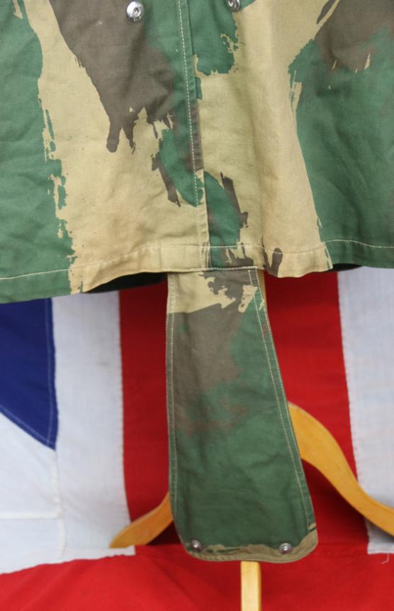 The battalion was involved in the NATO operation in Kosovo in 1999, Operation Agricola. In 2003, they were deployed to the Persian Gulf for Operation Telic in Iraq where despite overwhelming odds, two multiples of No. 8 platoon managed to fight their way out of the town of Majar al-Kabir. The Denison smock (or Smock, camouflage on later garments) remained on inventories in Commonwealth and other militaries after the Second World War, and was popular with troops in Korea. It remained standard combat dress for the Royal Marines and the Parachute Regiment until the mid-1970s . 1959 Para Smock Denison parachutist smock fish tail flap date 1964 size 1 knitted cuffs Beginning in 1959 the Denison smock was redesigned and the brushstroke pattern reconfigured. The 1959 pattern smock camouflage (and those produded thereafter) has a distinctively different look to it than the earlier Denisons, with a lighter and more prominent background, incorporating only two additional colours (usually brown and green) to create the basic brushstroke overprint. (WW2 era Denisons were darker and often appeared to incorporate more than two colours due to the blending and mixing of dyes that occurred during the application process.) These smocks were produced into the 1970s, and despite the standardization in manufacturing and printing technique, they still show much variation in colour and hue depending on when they were produced. The 1959 pattern Denison smock was worn primarily by members of the Parachute Regiment in theatres such as the Suez and Ulster (Northern Ireland), although there is evidence to suggest it was also issued in limited quantities to the Royal Marines (RM). and worn by British Special Forces , and US Special Forces in vietnam war too. The Denison smock (or Smock, camouflage on later garments) remained on inventories in Commonwealth and other militaries after the Second World War, and was popular with troops in Korea. It remained standard combat dress for the Royal Marines and the Parachute Regiment until the mid-1970s (see below), and changed little from the wartime issue. A full length brass zip had become standard - with no cloth flap to cover it - and the ever-popular knitted cuffs (deleted on the 2nd Pattern smock, but often imitated by sewing woollen sock tops to the cuffs), were reintroduced. The base colour of the camouflage pattern was now a lighter khaki shade. The "Newey" press studs changed from brass/copper to nickel-plated versions.