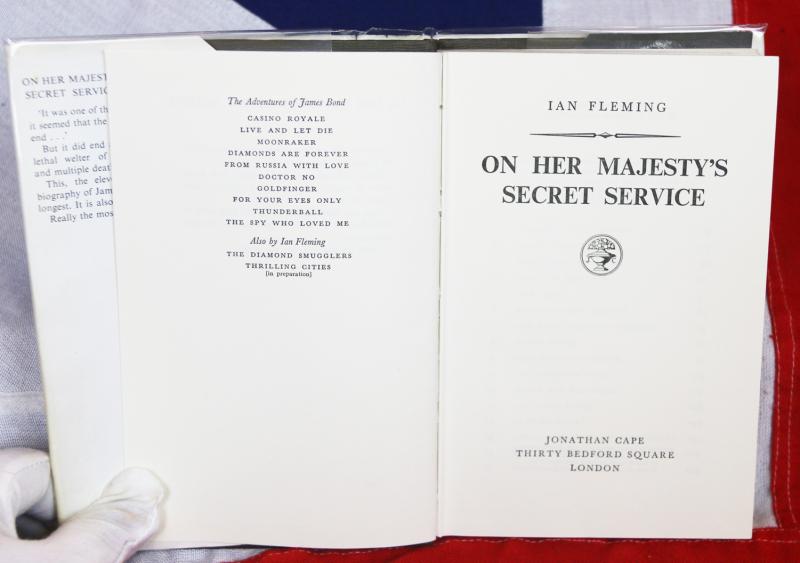 On Her Majesty s Secret Service, Ian Fleming, first edition, first print, Jonathan Cape, 1963. Cloth-bound book is firm and square.