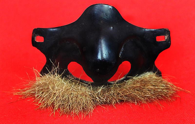 The best ability of Munesuke was the hammering technique (uchidashi): his menpo look almost exagerated in their shapes, with a very long chin, sharp and deep wrinkles on the cheeks and theatrical mouth. Moustaches are often inlaid in silver or gold, instead of being in fur as on Nara style menpo.