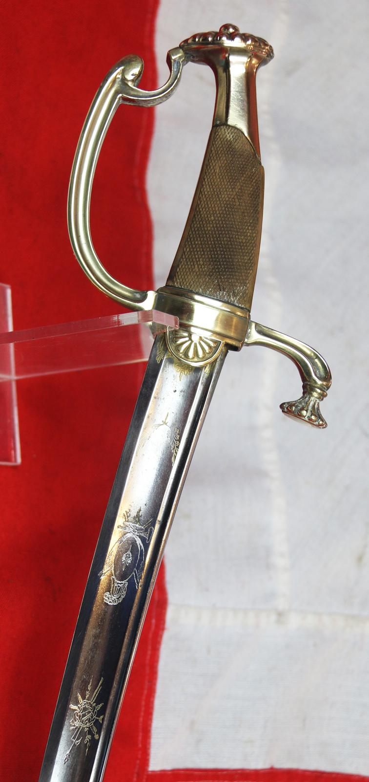 Modelled after Napoleon’s sabre, re-named by him the Marengo sabre, that he used from the battle of the Nile and at Marengo during his defeat of the Austrians. He presented it to his brother Jerome who was crowned King of Westphalia.