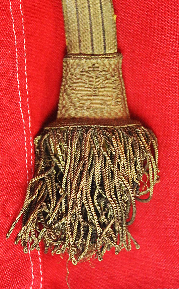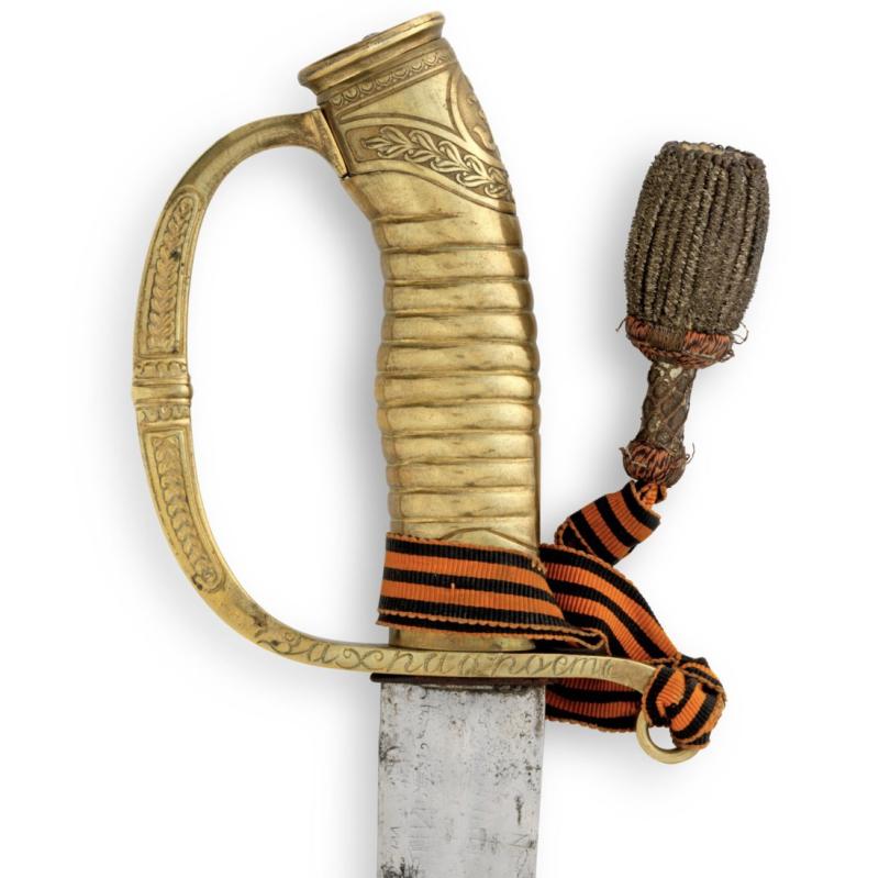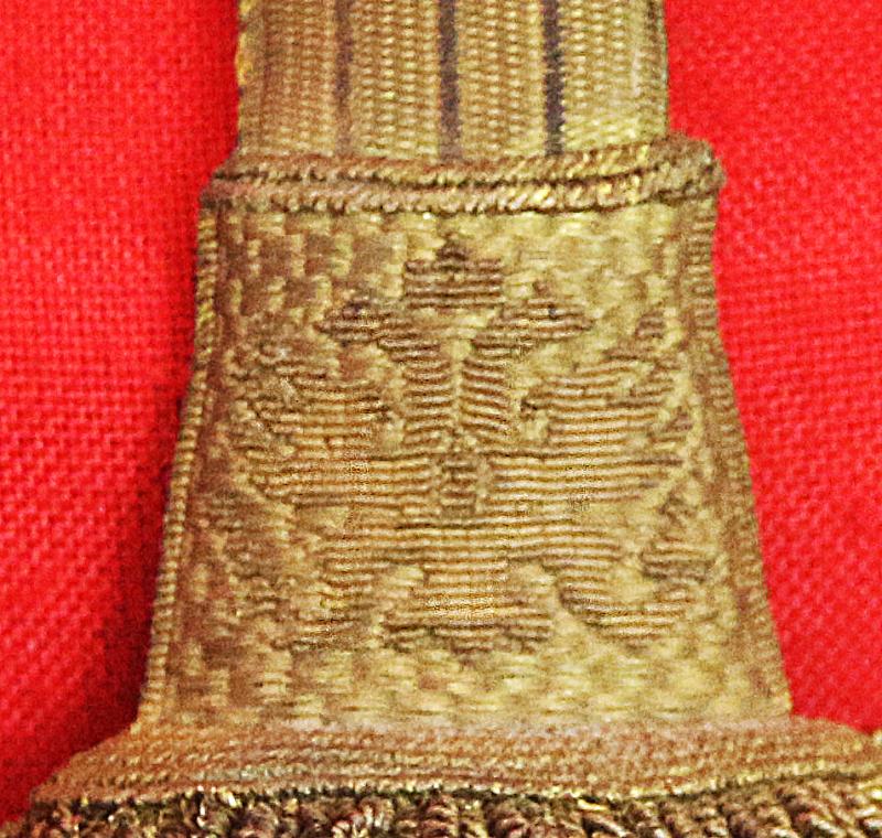 Photo 7 in the gallery is a portrait of Prince Mikhail Dmitrievich Gorchakov, and photo 8 is a close-up of his same sword knot though not well defined in the portrait. Picture 9 in the gallery is the closest original Romanov era example we can find, fitted to its sword. However, it is a much later version of knot, from the 1900’s, and for a regular ranked Officer’s sword of St George, that sold {the sword and its later knot} for £18,750 four years ago.
