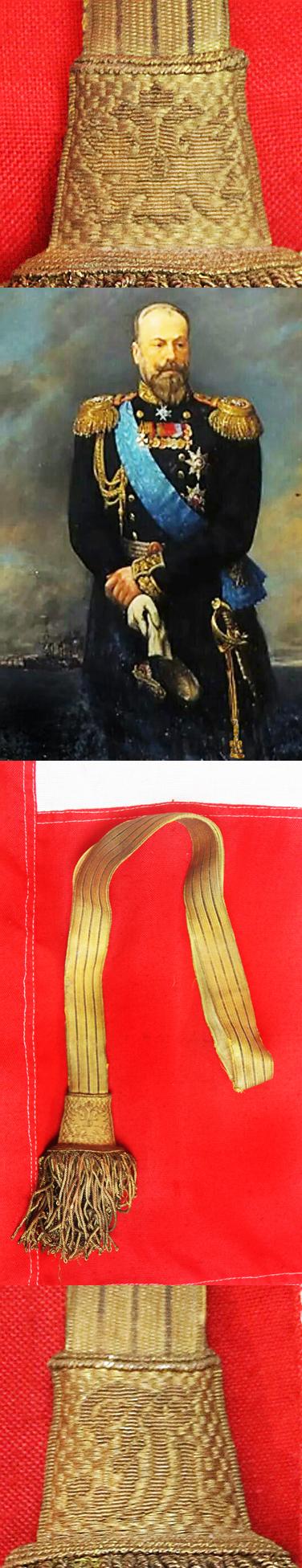 An Incredibly Rare Crimean War Romanov Senior Officer's Sword Knot, Such As Worn By A Romanov Grand Duke of Russia, Or General. The Bullion Gold And Crimson Silk Knot Bears The Romanov Crest on One Side and a Cyrillic Royal Monogram on The Other