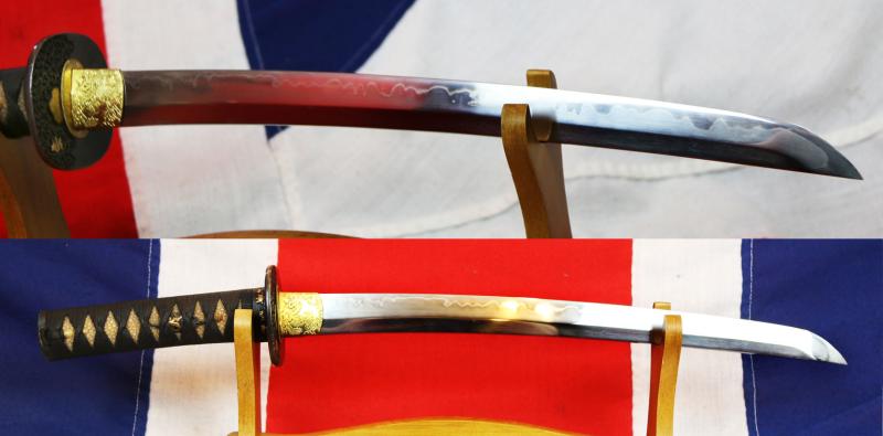 A most splendid samurai sword, the secondary sword of likely a daimyo, clan lord, around 425 years old. The blade bears a wonderous hamon of incredible activity with the Shinto Osaka school designs of gunome midare ba, with crab claws. it has just been expertly cleaned and conserved and looks spectacular.