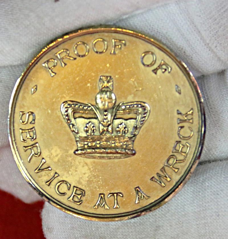 Rare, Victorian, British Board of Trade, Rocket Apparatus, Combination Gold Coin & Medal. 'Proof of Service at a Wreck'. This 19th Century Coin Medal Was A Value of 5/- For Rocket Launching Servicing A Wreck’ In Distress. {1/- Extra for Saving A Life}